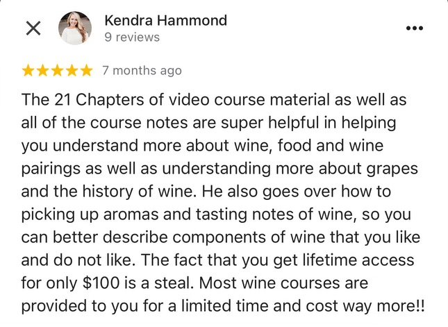 But don’t take my word for it. Here is an actual screenshot from Someone who’s taken the unpinned wine course…